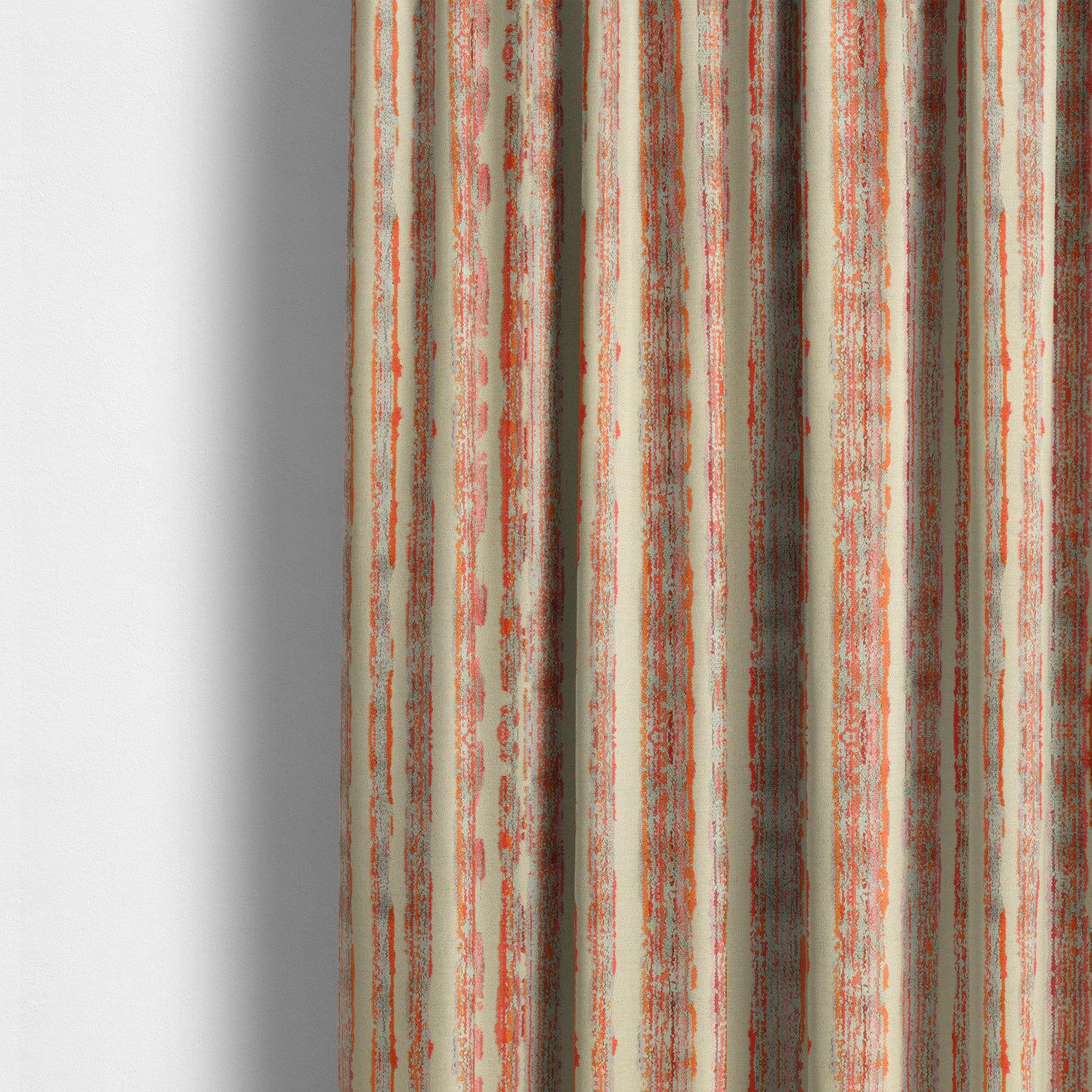 Enhance the elegance of your home with these made-to-measure curtains featuring a vertical striped pattern in red, orange, and grey velvet upholstery fabric. Perfect for adding a touch of luxury to any room while providing privacy and insulation. With quality and style, these curtains will elevate your decor.