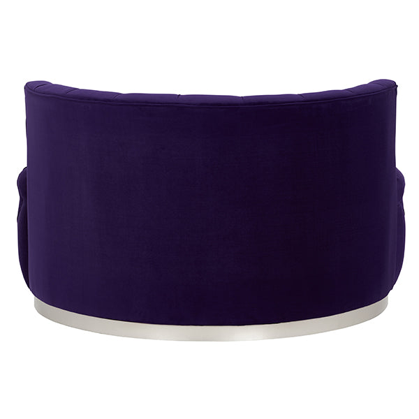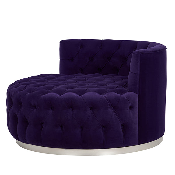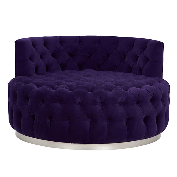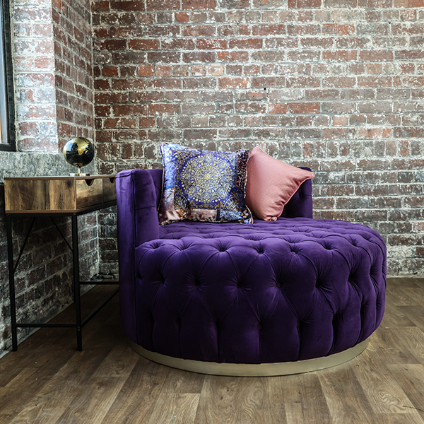 It's all in the detail with Vincenzo. Our seat exudes luxurious indulgence. Made to the highest quality, this lavish circular chair is something you’d expect to see in a luxury hotel with its utterly divine design, texture and sumptuous shape. Evoking a feeling of grandeur, this unique chair is an investment piece that can be treasured forever, so what’s not to love?! Deep buttoning in opulent emperor purple velvet the larger size makes this a great seat to share. The contrast of the rich jewel velvet works beautifully against the polished chrome plinth, nothing says luxury quite like the Vincenzo.