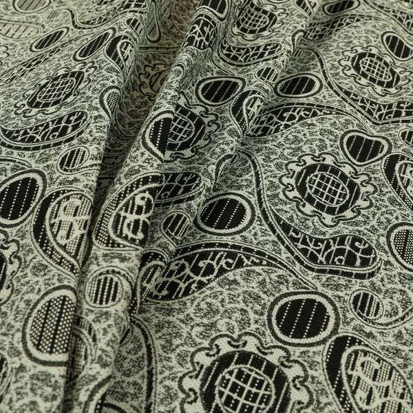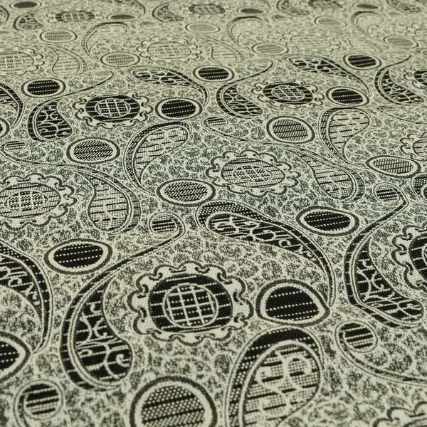 Elevate your home decor with our Wasilla upholstery furnishing fabric in a beautiful cream and black paisley damask pattern. Designed for durability and style, this fabric is perfect for creating elegant Roman blinds that will add a touch of sophistication to any room. Experience the luxury of expertly crafted furnishings now.