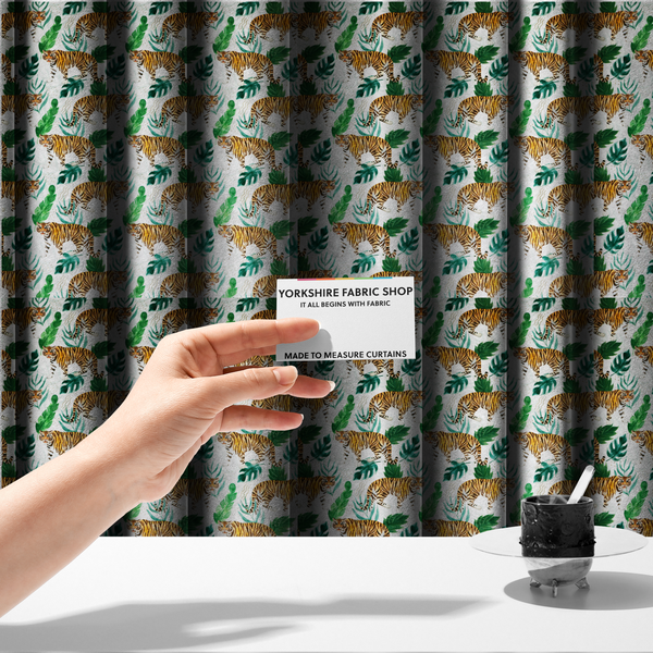 Transform your space with this stunning watercolour tiger safari design, rendered in luxuriously soft velvet. Perfect for creating bespoke curtains that make a bold statement, this upholstery fabric brings wild elegance and artistic flair to any room. The intricate tiger motif captures nature's beauty with painterly charm, while the plush velvet texture adds tactile warmth and sophistication. Ideal for those who dare to blend adventure with refined style. Made to measure for your perfect fit.