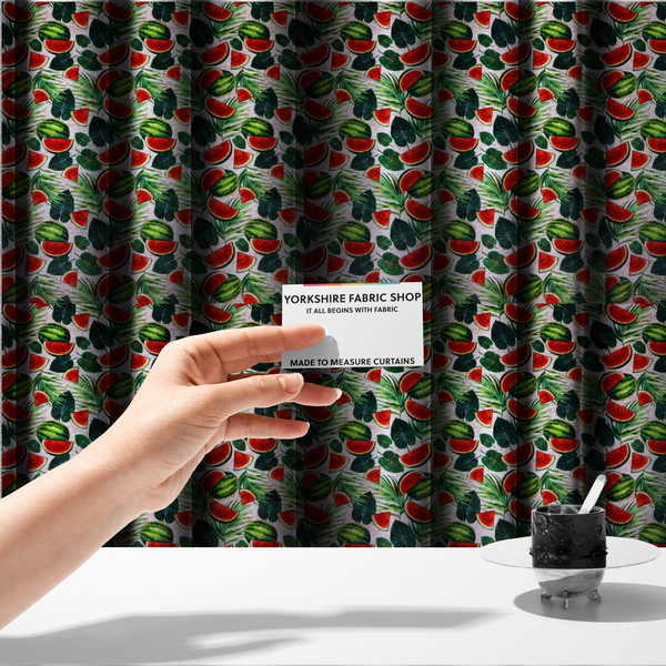 Bring vibrant summer vibes into your home with this stunning watermelon extravaganza velvet fabric! Featuring bold, juicy watermelon prints on luxuriously soft velvet, this upholstery material adds a playful pop of colour to any room. Perfect for made-to-measure curtains, cushions, or statement furniture pieces, the plush texture feels as delightful as it looks. Whether you're refreshing a living space or creating a whimsical accent, this fabric delivers comfort and personality in equal measure. Order your custom length today and transform your interior with fruity fun!