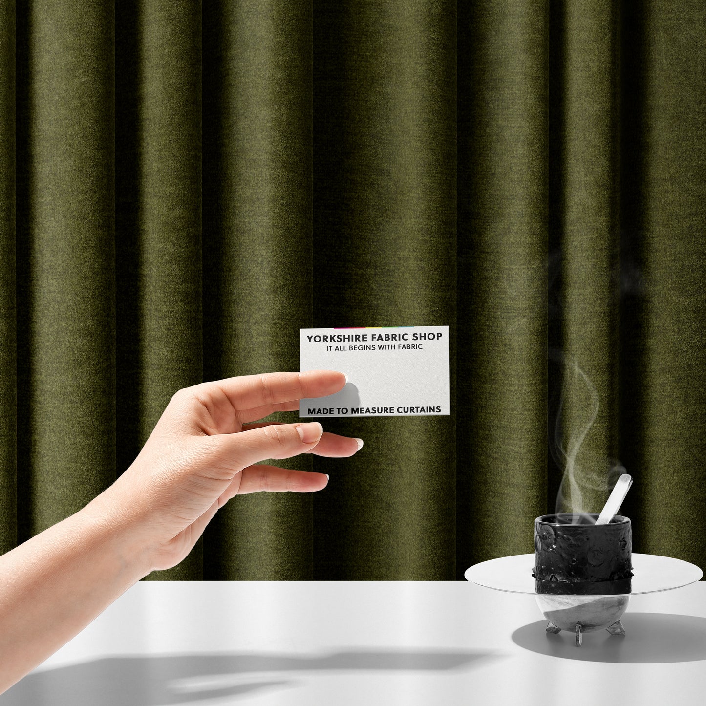 Expertly crafted with Wazah plain velvet, this green upholstery fabric has been treated to be water repellent. It's the perfect way to add luxurious texture and protection to your curtains, made to your exact measurements. Enjoy a worry-free, stylish addition to your home.