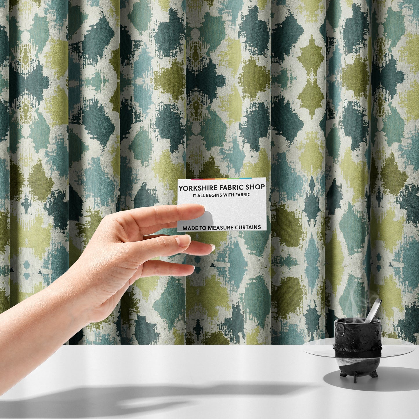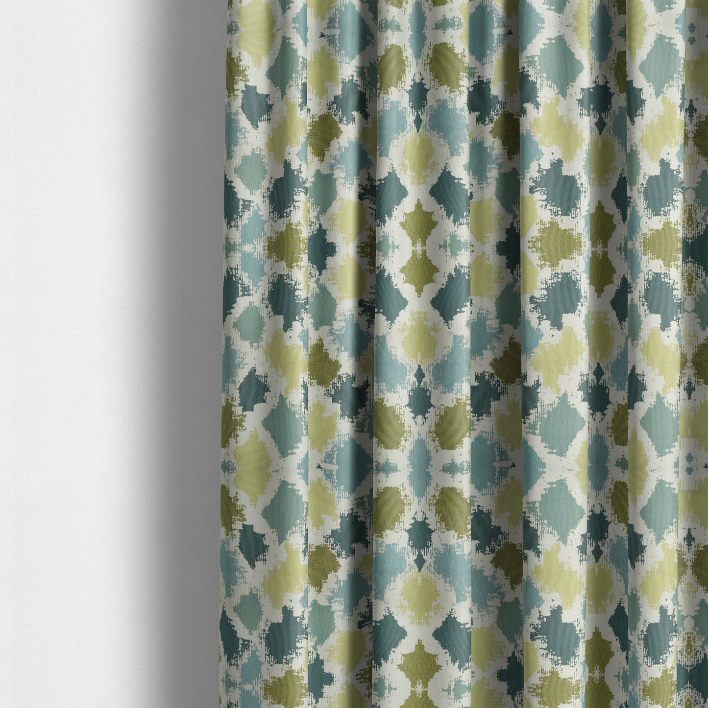 Elevate the style of your home with our white green blue colours paint splotch inspired pattern soft chenille upholstery fabric. Expertly crafted and made to measure, this high-quality fabric boasts a unique paint splotch design in white, green, and blue tones. Upgrade your curtains and enjoy a modern touch to your decor.