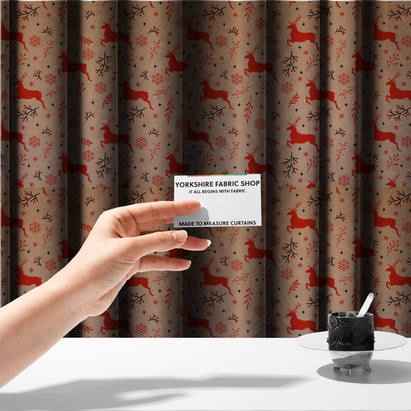 Bring a touch of woodland magic to your windows with this charming winter woodland berry and stag print fabric. Featuring graceful stags and festive berries set against a cosy forest backdrop, DP-61 is perfect for creating bespoke curtains that tell a story. Whether you're after a traditional country aesthetic or a modern twist on classic design, this versatile upholstery fabric transforms any room into a seasonal retreat. Made to measure means your curtains fit perfectly—no faffing about with standard sizes. Ideal for adding personality and warmth to living spaces throughout the year.
