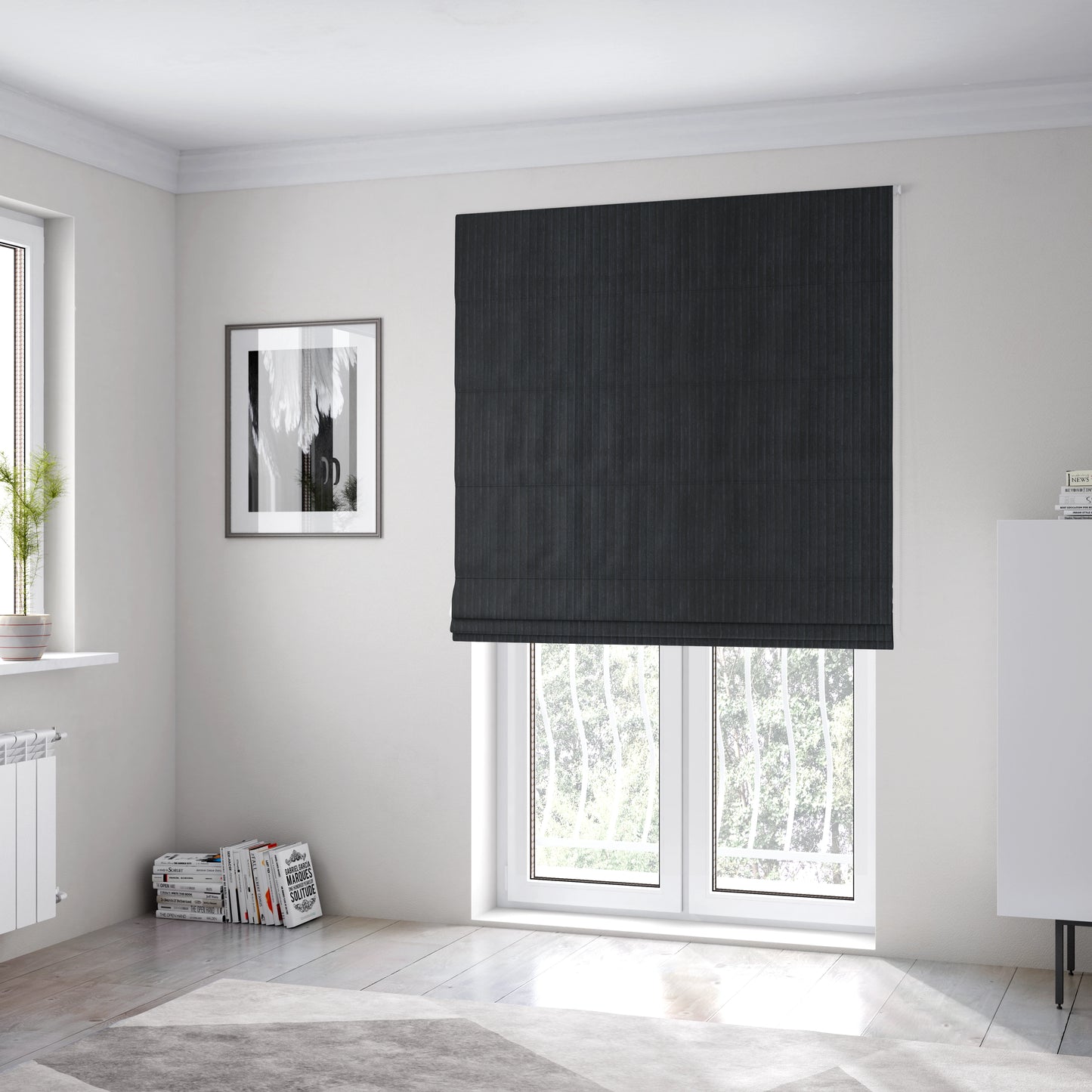 Expertly crafted with high low corduroy fabric in classic black, these Roman blinds add a touch of sophistication to any room. The luxurious texture provides both style and privacy, making them ideal for any living or working space. Effortlessly elevate your home or office with our York Roman blinds.