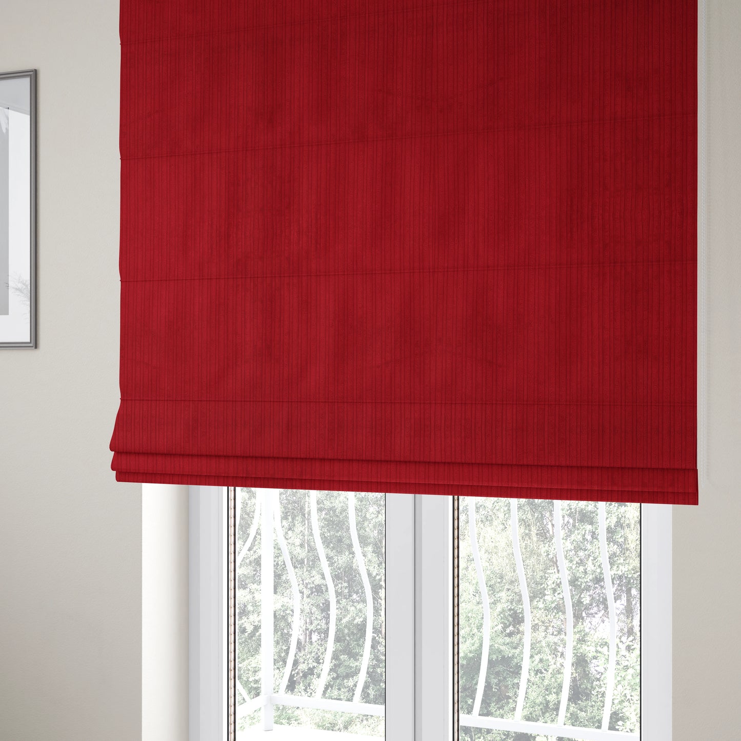 Transform your space with our York high low Corduroy Roman blinds in red. The unique corduroy fabric adds texture and depth, while the high low design creates a dynamic look. Enjoy the benefits of both style and function with these versatile blinds.
