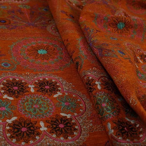 Enhance your home decor with our Zamorin Roman blinds, featuring a detailed and colourful weave patchwork theme pattern in orange and multicoloured chenille fabric. Create a unique and stylish look while also enjoying the benefits of light control and privacy. Perfect for any room in your home.