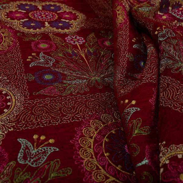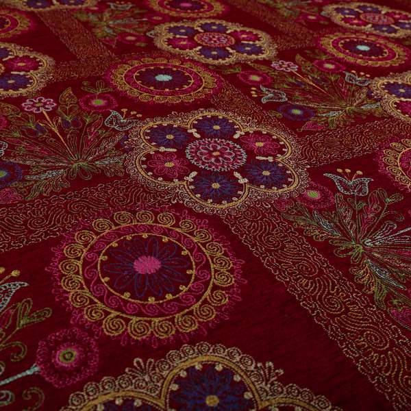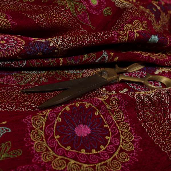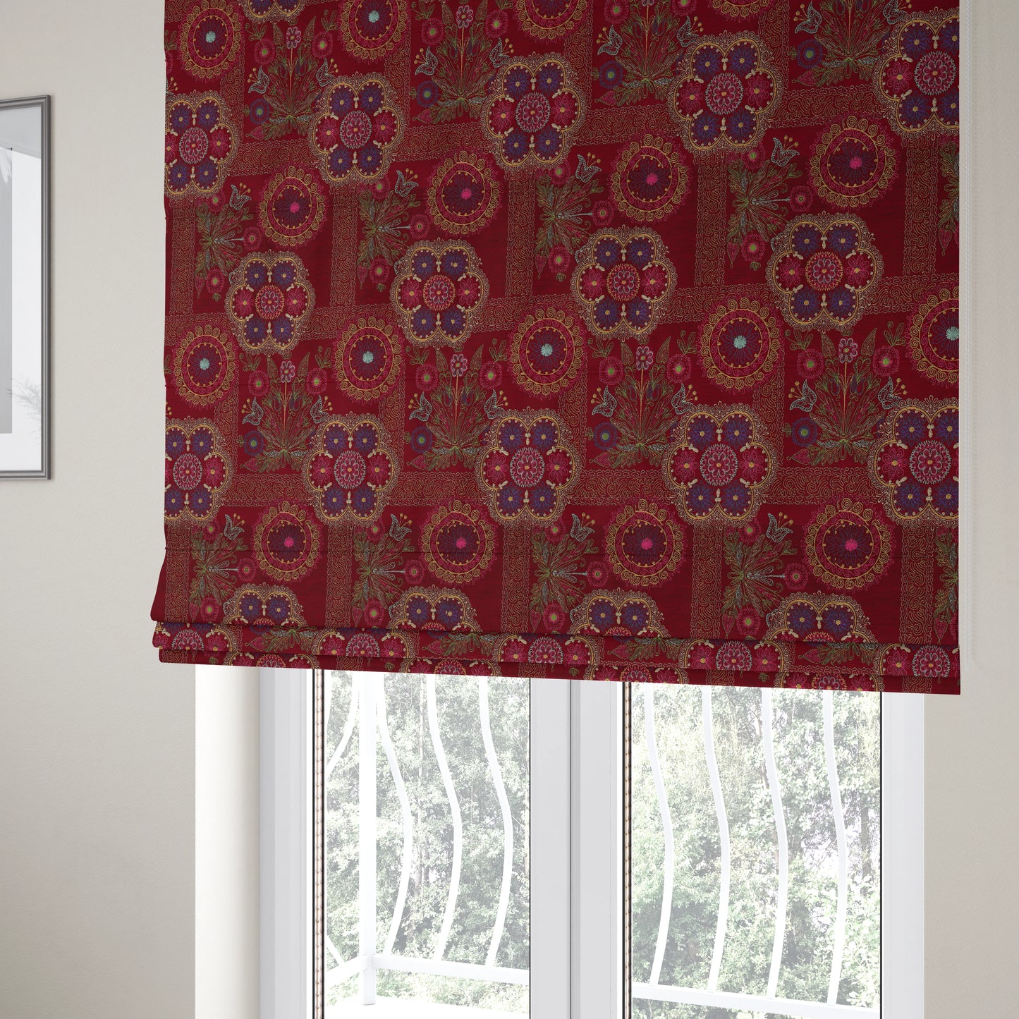 Expertly crafted with a colourful patchwork theme, these Zamorin Roman blinds are made from chenille fabric for a luxurious touch. The detailed weave adds depth and texture to any room, while the rich red and multicoloured hues bring a pop of colour to your decor. Elevate your windows with these stylish and durable blinds.