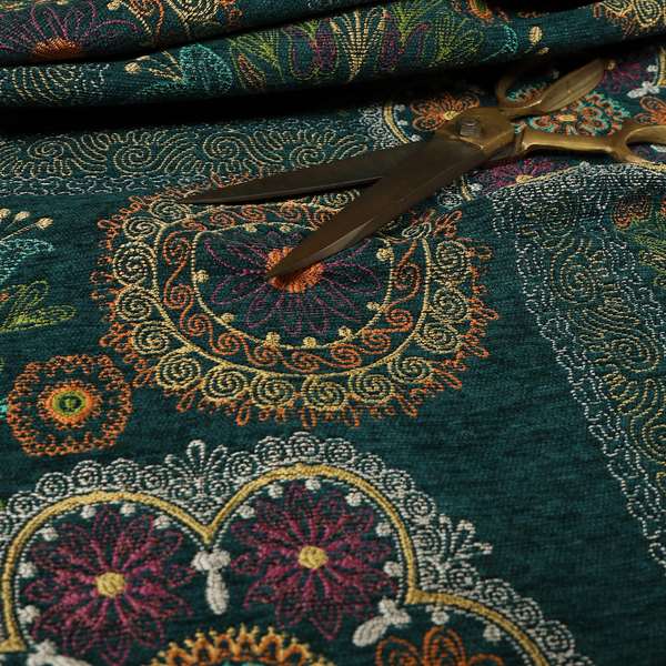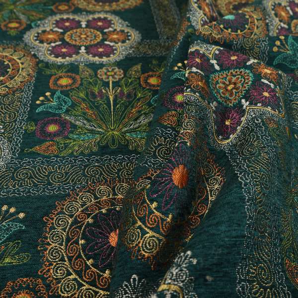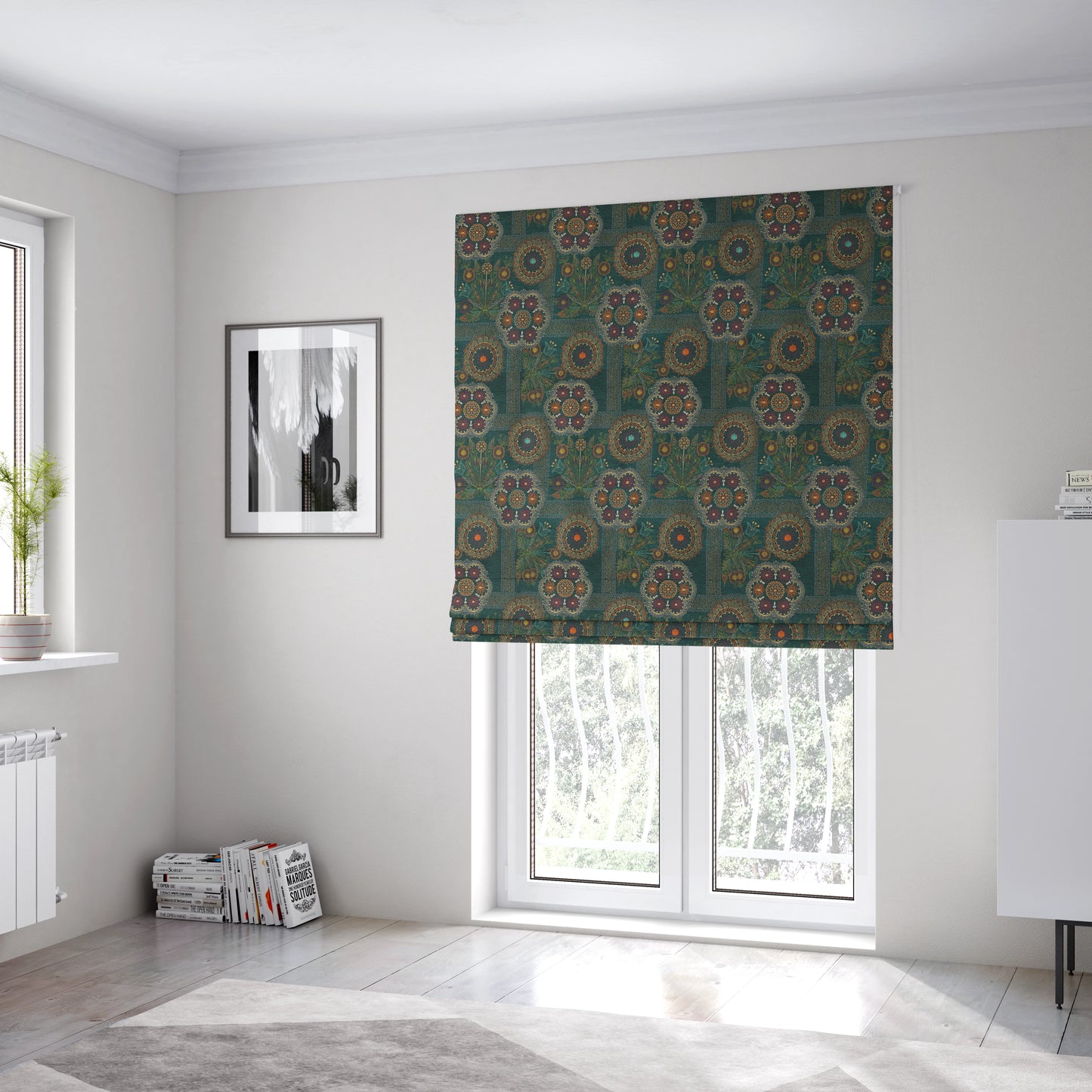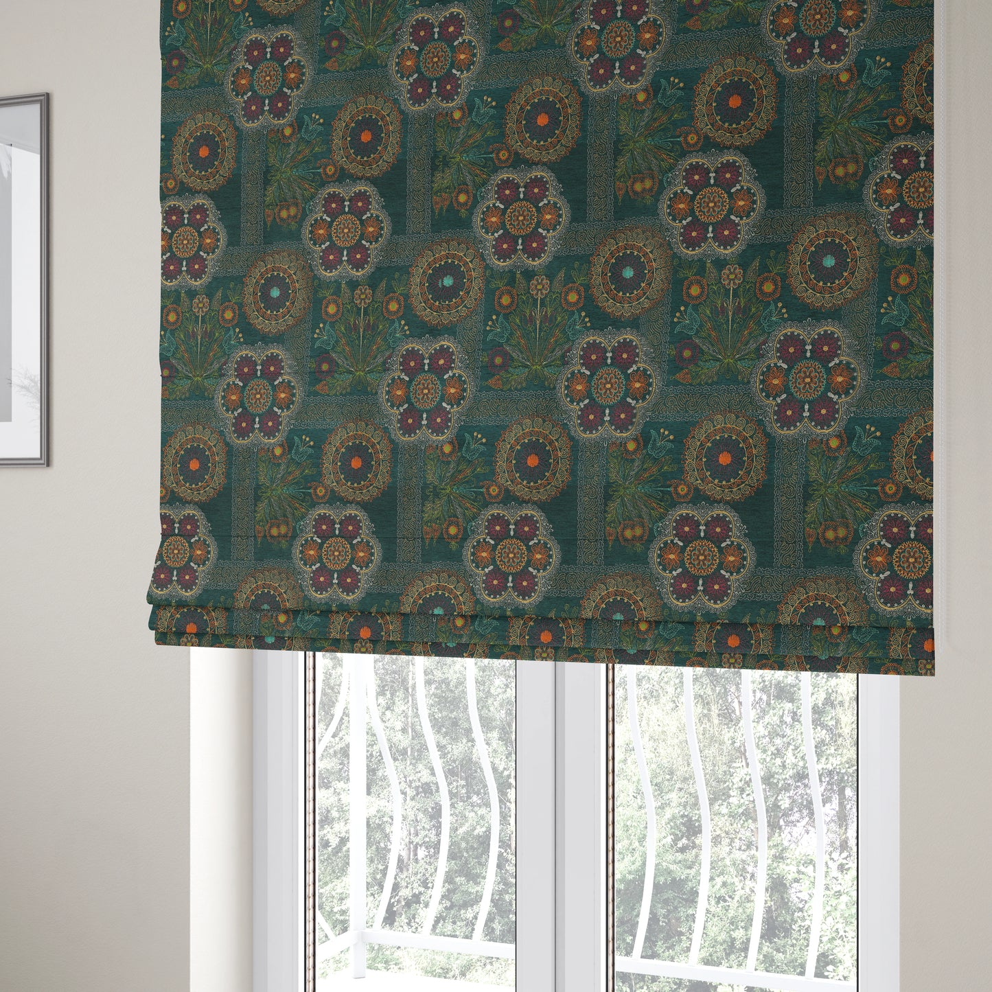Introduce a touch of style and color to your home with our Zamorin Roman blinds. Made from detailed colourful weave patchwork theme patterned chenille fabric, these blinds are sure to add a pop of personality to any room. Available in teal blue and multicoloured options.