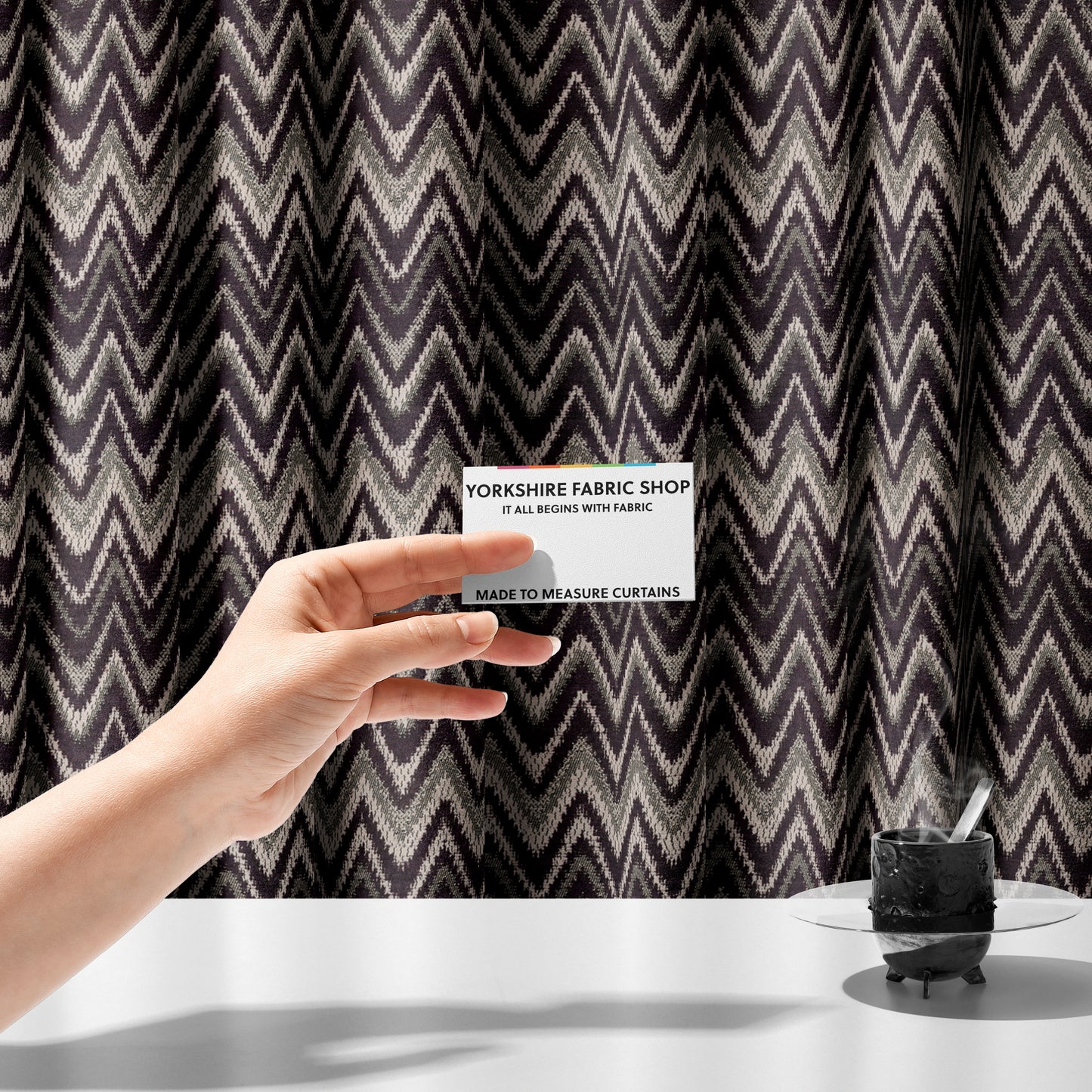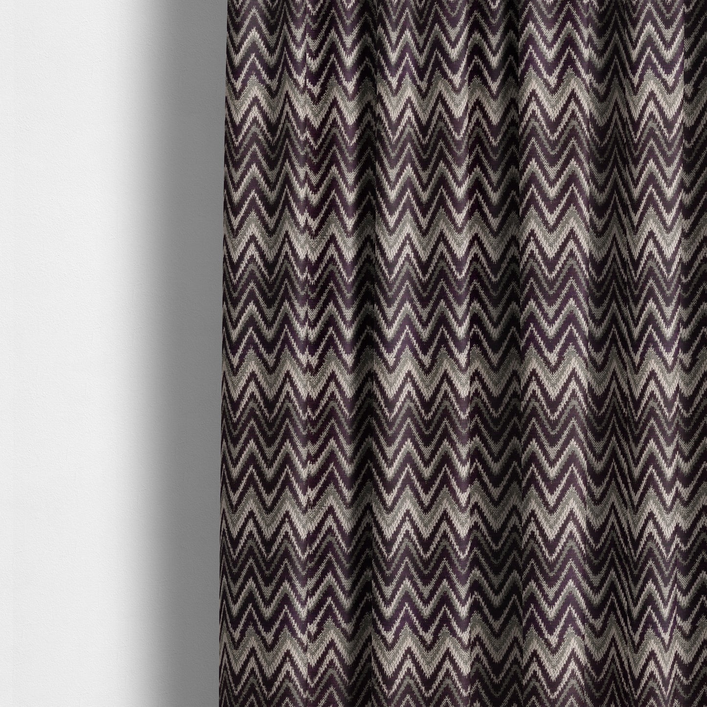 Indulge in the luxurious softness of our Zanzibar chevron pattern upholstery fabrics. Made from soft chenille material in a beautiful purple hue, these fabrics are perfect for adding a touch of elegance to your space. Plus, they can be made to measure for custom curtains that will elevate any room.