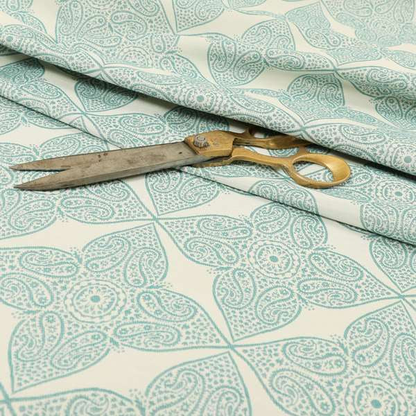 Expertly crafted from the Zenith collection, this smooth chenille fabric features a teal green colour with a beautiful medallion pattern. Perfect for Roman blinds, it adds a touch of elegance to any room. Made with durable materials, it provides long-lasting quality for your home.