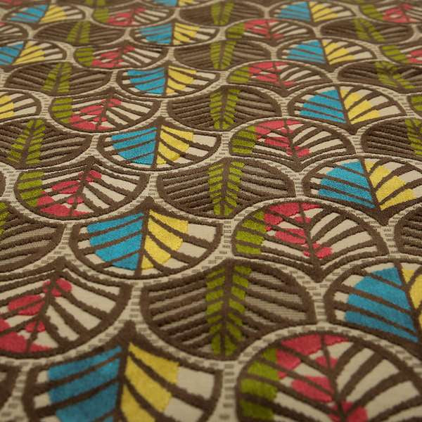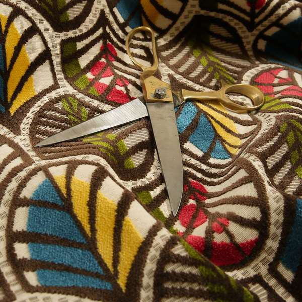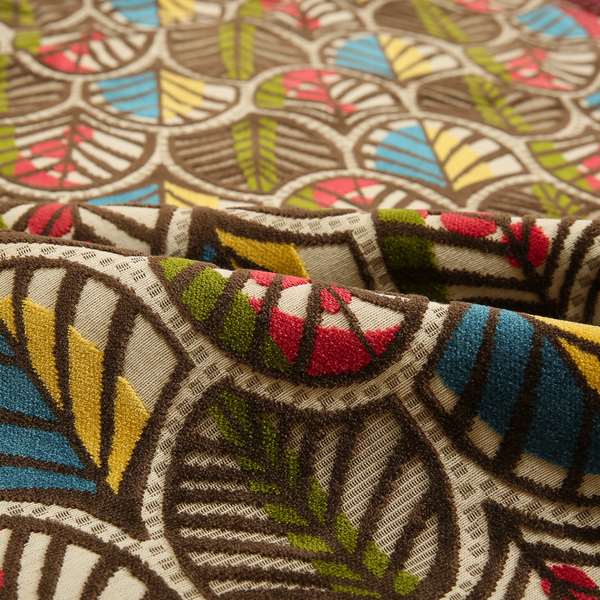 Experience luxurious comfort with Ziani's vibrant green pink yellow and brown velvet upholstery fabric. The intricate anthemion leaf pattern adds a touch of elegance to any room and is perfect for Roman blinds. Enjoy the perfect balance of style and comfort with Ziani fabrics.