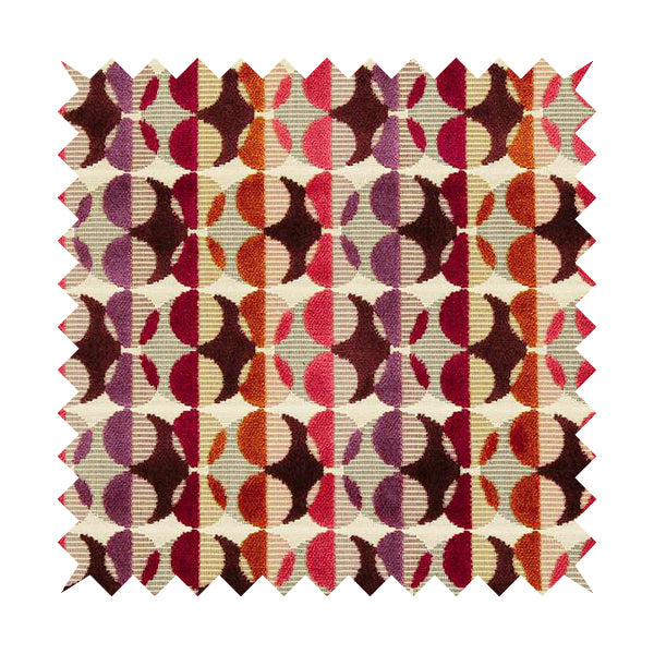 Expertly designed by Ziani, this velvet upholstery fabric features a vibrant orange, pink, purple, and red color scheme with an elegant eclipse pattern. Perfect for Roman blinds, this fabric adds a touch of sophistication and style to any space while providing durability and a luxurious feel.