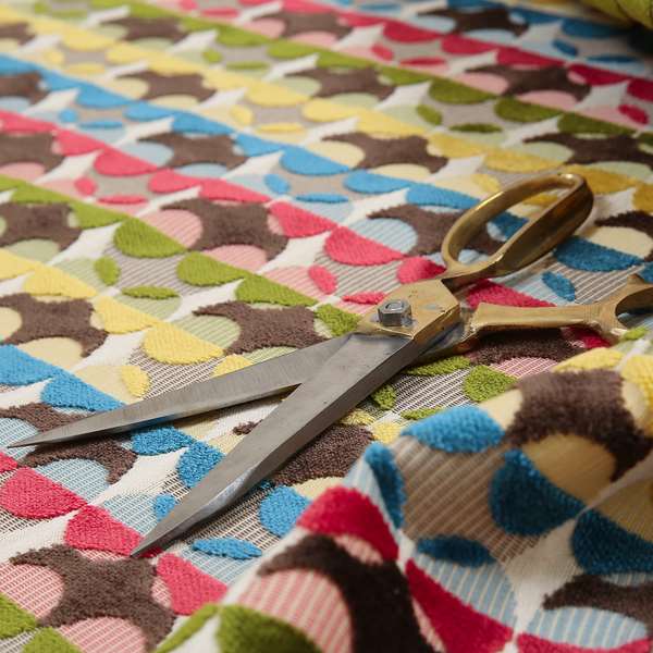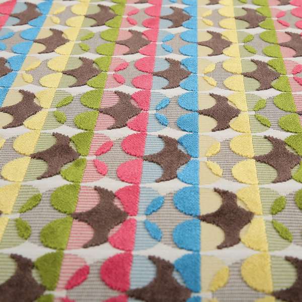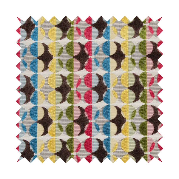 Transform your home with the stunning Ziani designer eclipse pattern. Available in a vibrant yellow, blue, brown, and red colour combination, this velvet upholstery fabric is perfect for Roman blinds. The intricate eclipse pattern adds a touch of elegance to any room. Elevate your interior with this designer fabric.