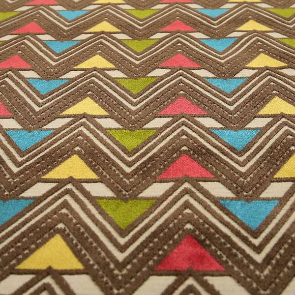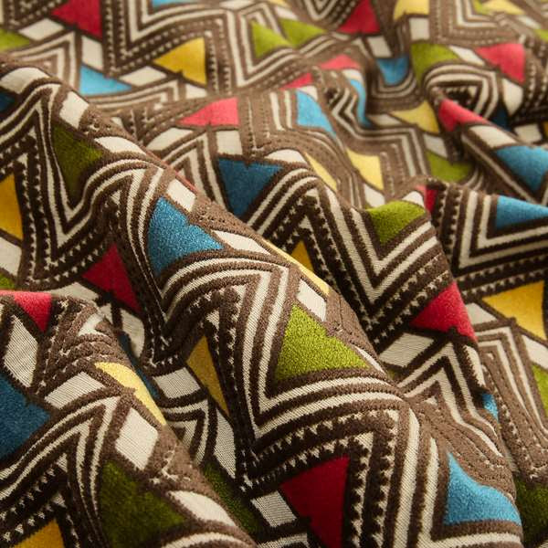 Introduce bold and vibrant colors into your home with our Ziani geometric pyramid pattern velvet upholstery fabric. The intricate design adds a touch of sophistication while the colour scheme brightens any room. Perfect for creating stylish Roman blinds that are both functional and eye-catching.