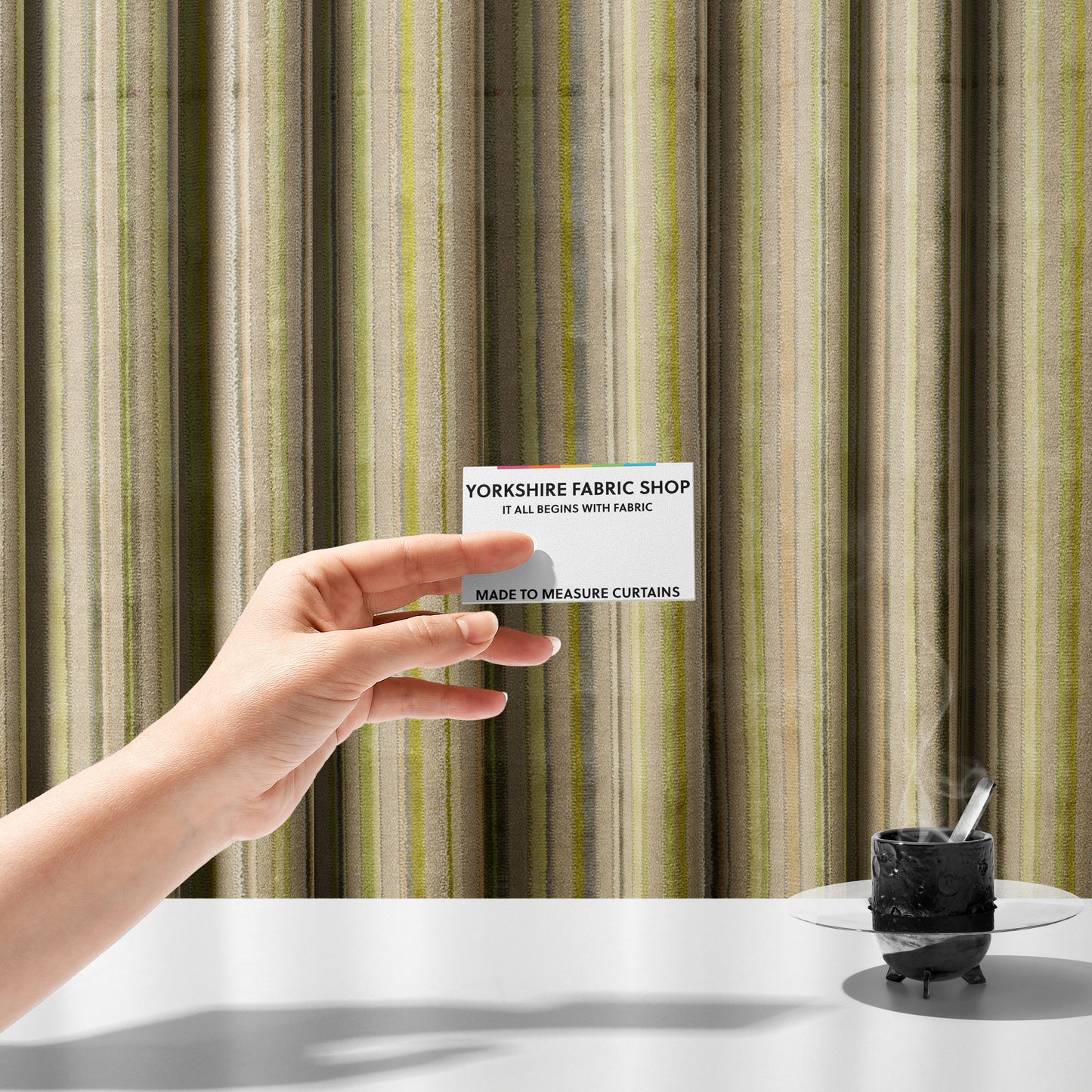 Expertly crafted with a modern striped pattern and lush velvet fabric, Ziani made to measure curtains add a touch of sophistication and luxury to any space. The green colour adds a fresh and elegant touch, making them the perfect choice for creating a stylish and cozy atmosphere.