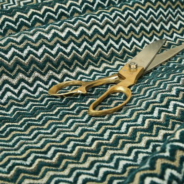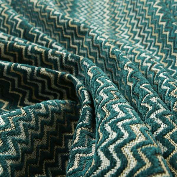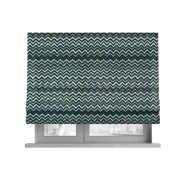 This chenille upholstery fabric features a stylish teal chevron striped pattern, adding a modern touch to any space. Made with high-quality fabric, it is perfect for Roman blinds and will elevate your home's decor. Available now in JO-02.