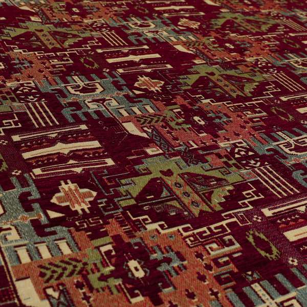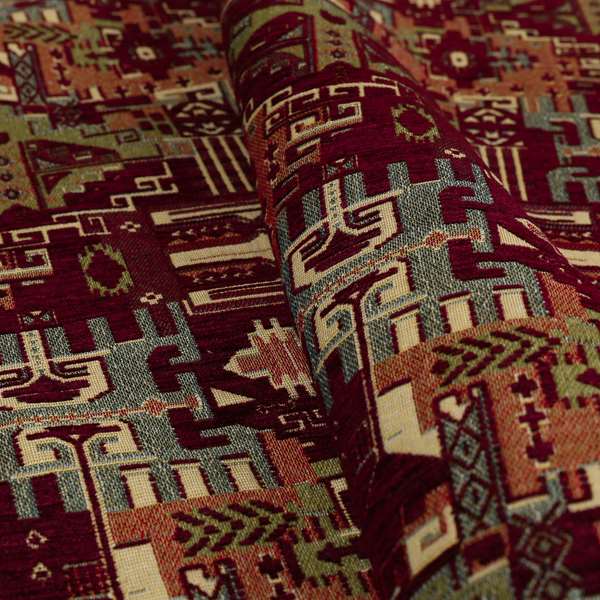 Discover the beautifully handcrafted Zoque kilim tribal theme patchwork intricate pattern Roman blinds. Made from luxurious burgundy chenille fabric, these blinds feature a unique tribal theme patchwork design, adding a touch of elegance and culture to any room. Elevate your space with these stunning blinds.