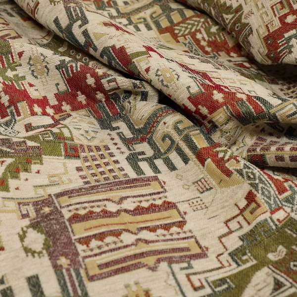 Transform your space with our Zoque kilim tribal theme patchwork Roman blinds. Each blinds features a unique intricate pattern inspired by tribal design. Crafted from cream colour chenille fabric, these blinds add both warmth and texture to your home. Elevate your decor with these stunning and versatile blinds.