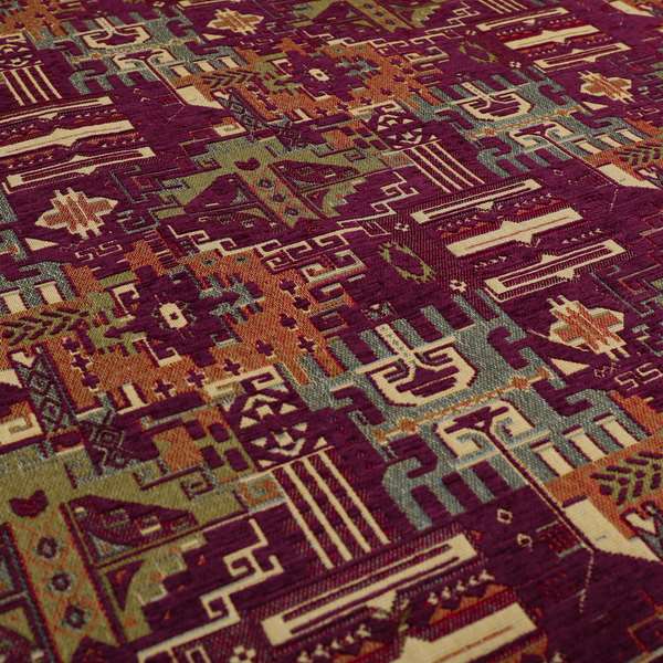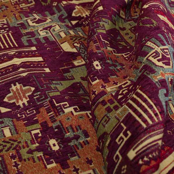 Expertly handcrafted, these Zoque kilim tribal theme Roman blinds feature a patchwork of intricate patterns in a beautiful purple chenille fabric. Embrace the tribal inspired design and add a pop of colour to your space while enjoying the functionality of easy to use Roman blinds. Elevate your home decor with these high quality, handmade blinds.