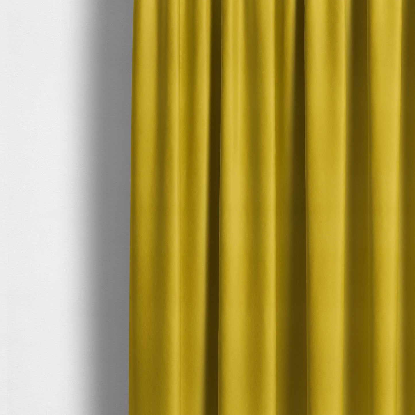 Introducing Zouk plain velvet fabric curtains in bumblebee yellow. Made from durable brushed cotton, providing a luxurious look and feel to any room. Perfect for creating custom-made curtains that will elevate your home decor. Enjoy the British quality and style with this unique upholstery fabric.